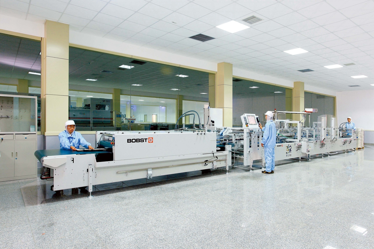 We have Heidelberg six-color plus coating offset printing machine,Heidelberg four-color plus coating offset printing machine, 3 pcs 7 color flexographic printing machine,Bobst full-automatic die-cutting machine,full-automatic glue box and half-automatic paper bag.